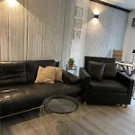 This accommodation is furnished with a sofa featuring modern facilities like a flat-screen TV with satellite channels. A bathroom is fitted with a separate toilet and a shower, along with a hairdryer and bath sheets, which are also provided.